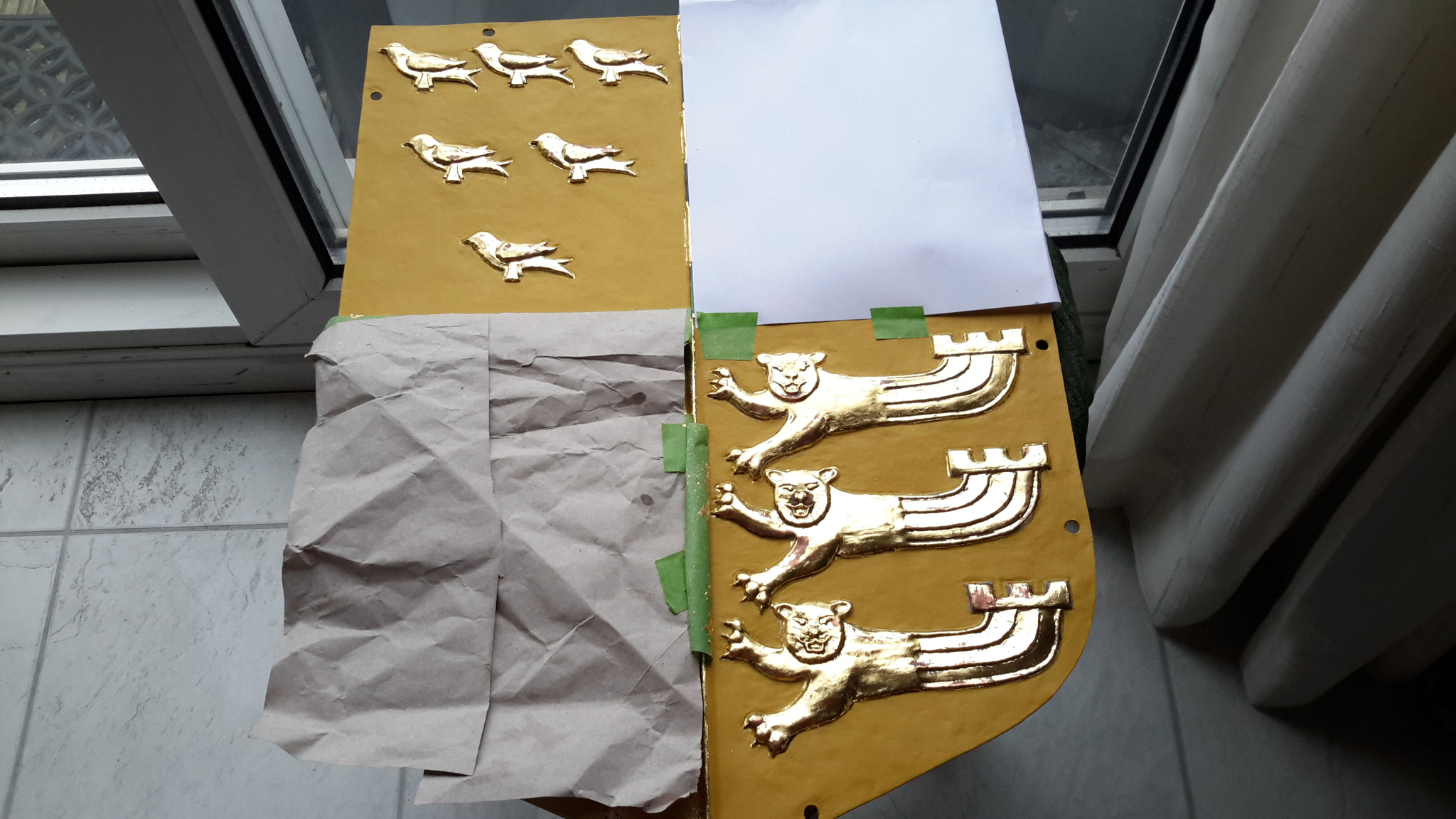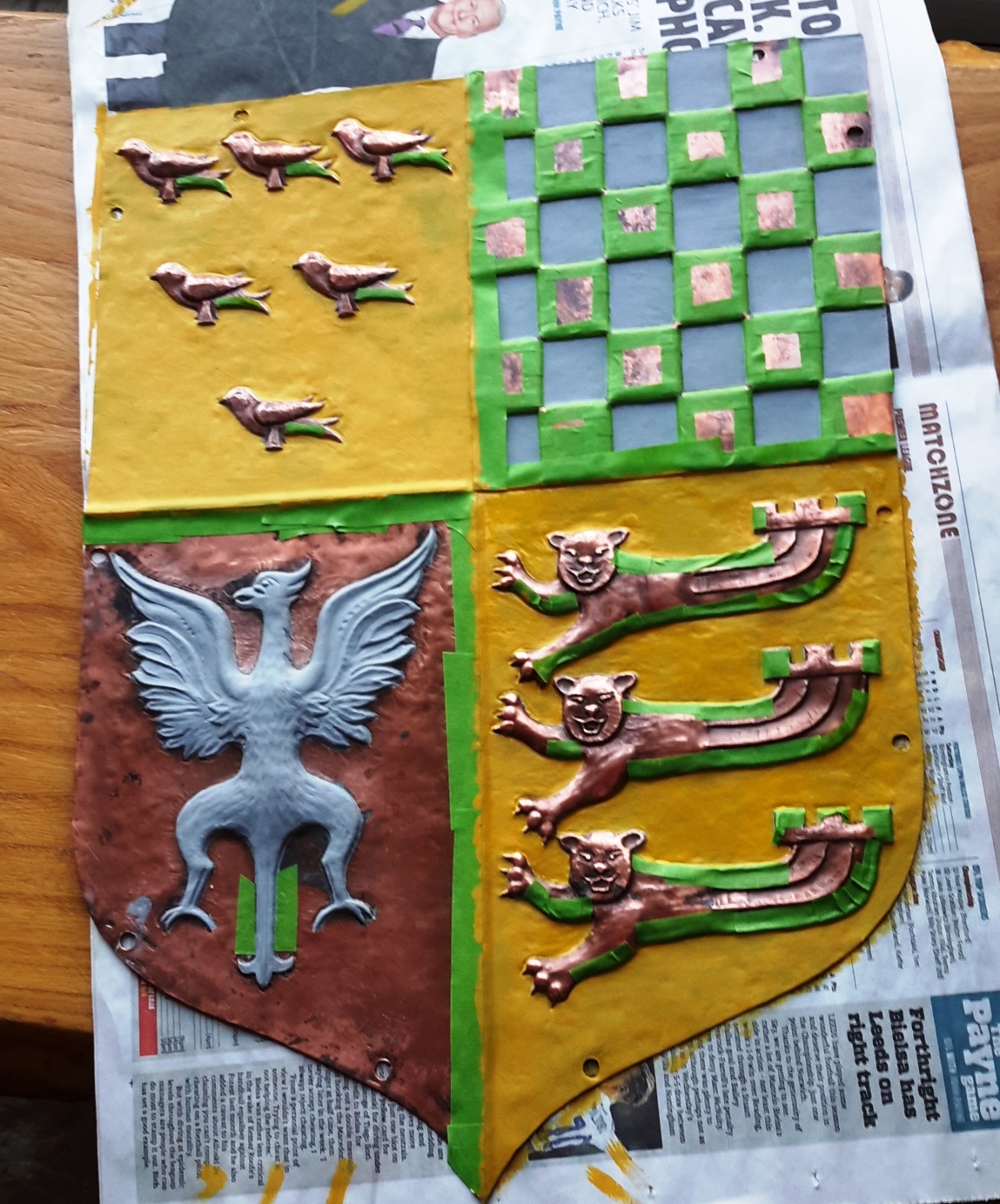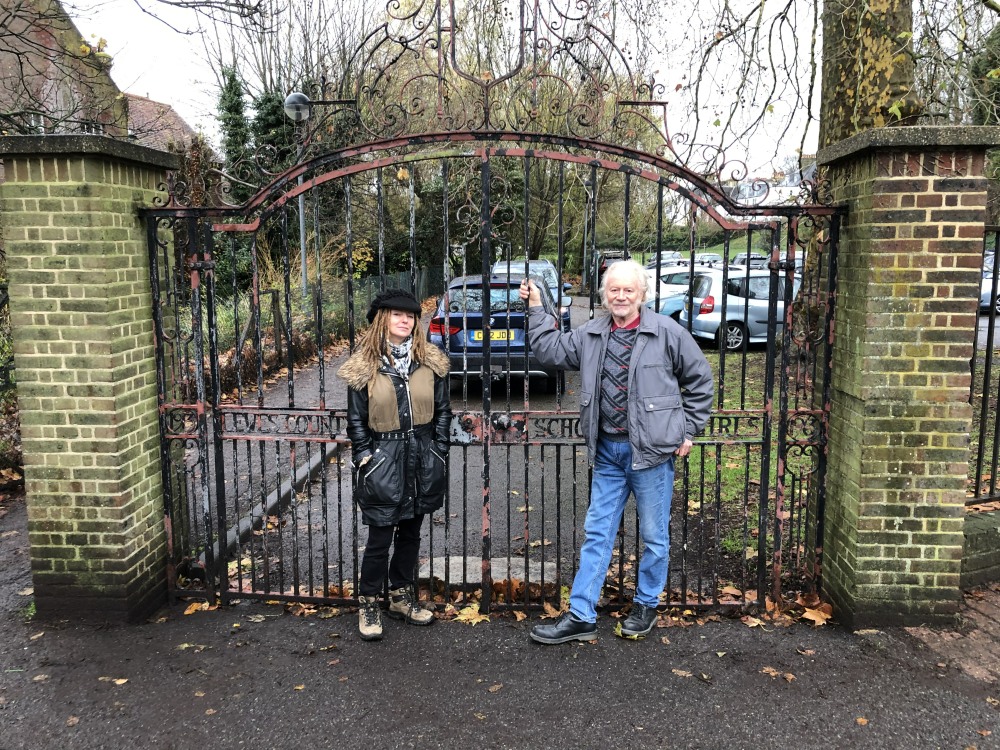 A small group of LCGSG and LCGSB ex-pupils and friends of the 2 primary schools occupying the former school, are engaged in renovating the Golden Gates - which were erected in 1963 to commemorate the Golden Anniversary of the Girls' School. The heraldic shield (escutcheon) at the top of the lintel was expertly refurbished using enamel and gold leaf during January, and the cleaned gates, posts and lintel will be repainted during February.