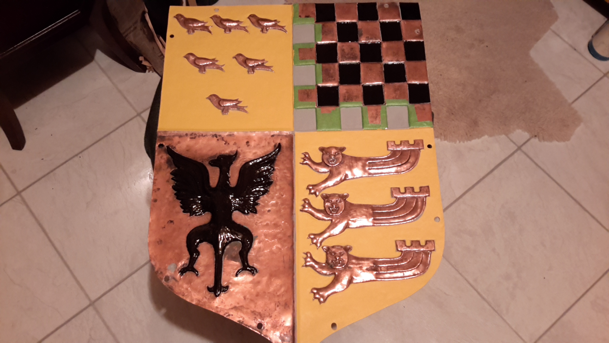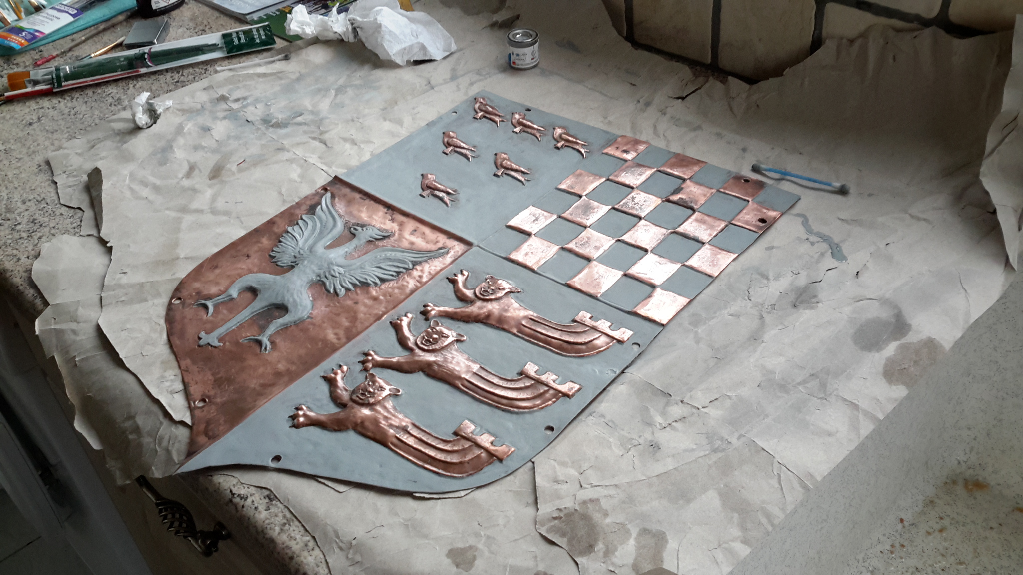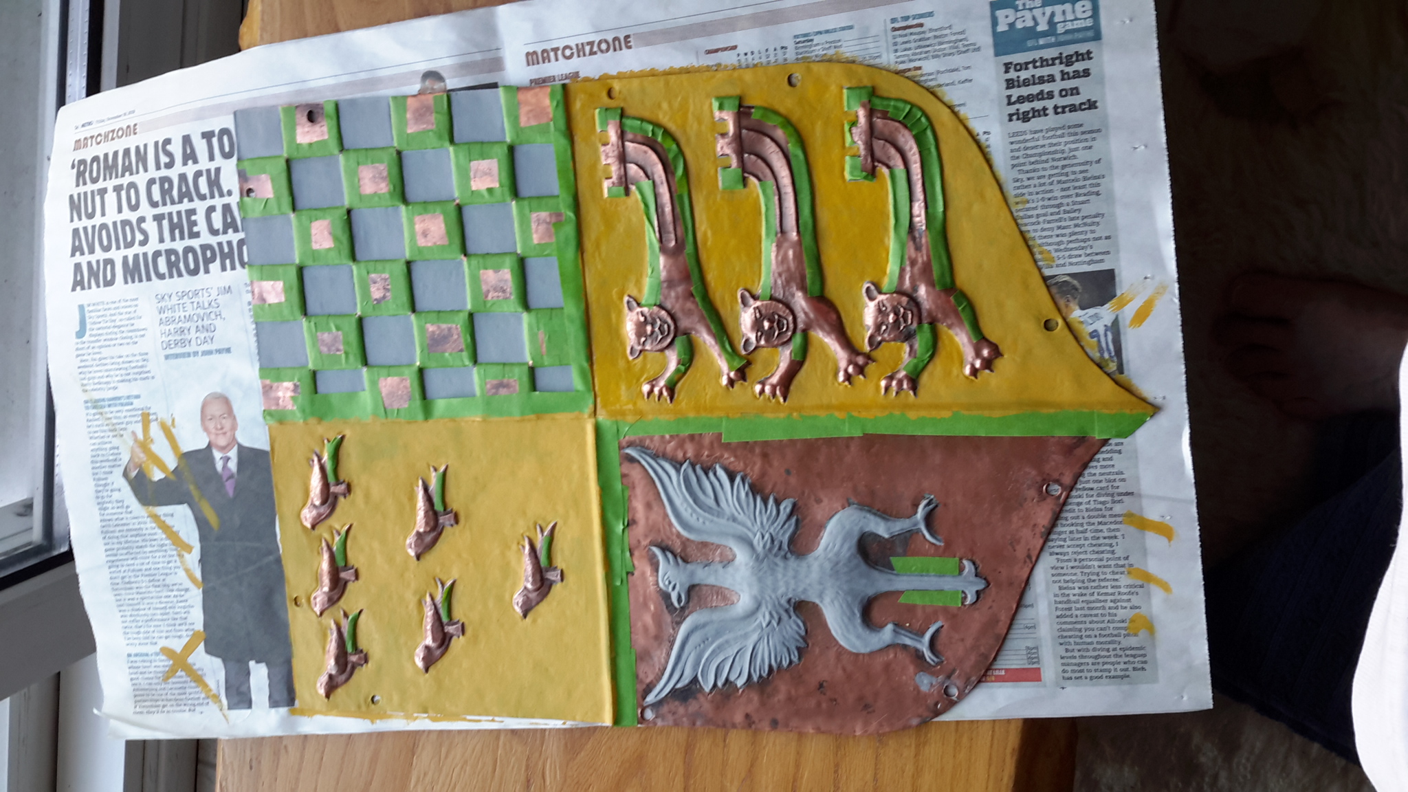 A small group of LCGSG and LCGSB ex-pupils and friends of the 2 primary schools occupying the former school, are engaged in renovating the Golden Gates - which were erected in 1963 to commemorate the Golden Anniversary of the Girls' School. The heraldic shield (escutcheon) at the top of the lintel was expertly refurbished using enamel and gold leaf during January, and the cleaned gates, posts and lintel will be repainted during February.