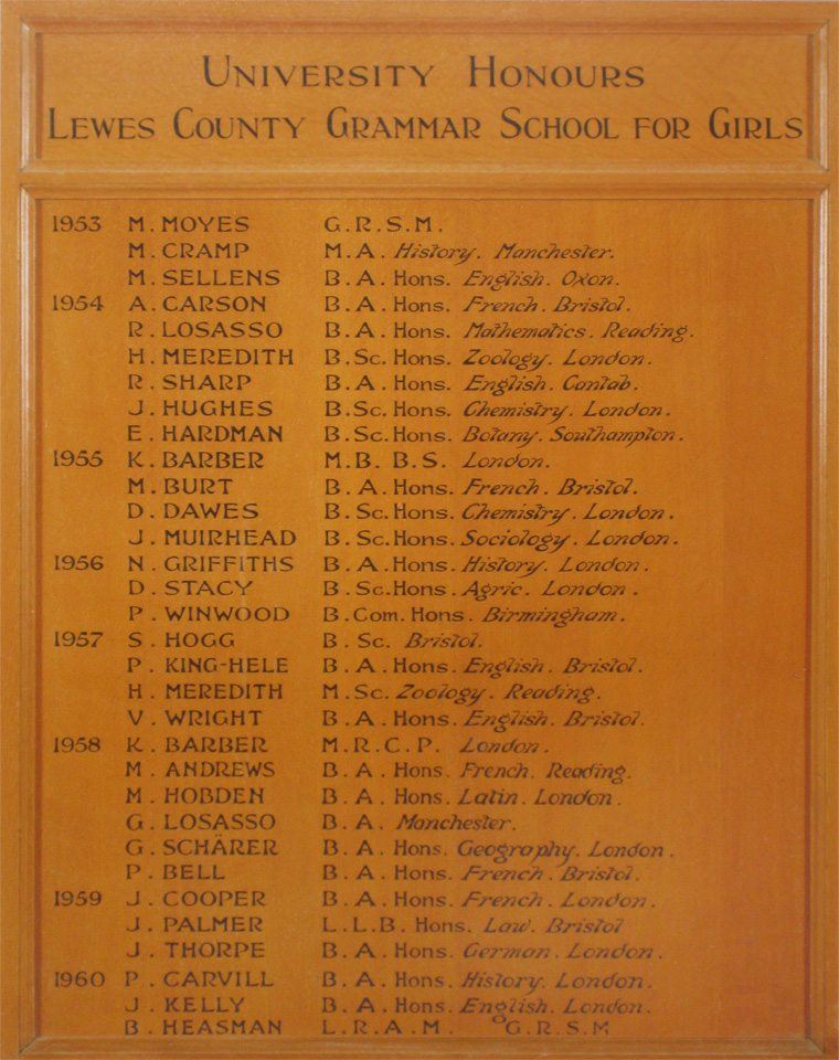 When the Priory School became a comprehensive school for 11 to 16 year-olds the boards simply did not fit into the new scheme. The old guard had given up the fight for the continuation of grammar school traditions and the honour boards and trophies were finally taken down.