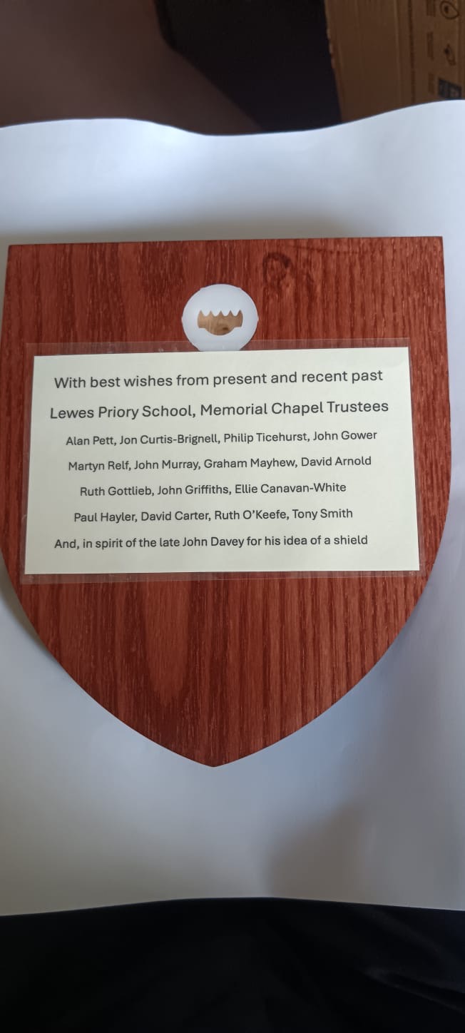 The Chapel Trustees sent Gerry a shield to mark his centenary :-